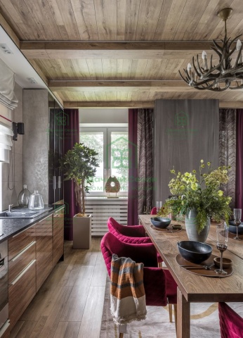 Планировка построена вокруг большой кухни-гостиной 36,5 м² — сердца дома. Здесь легко представить семейные ужины, шумные выходные и длинные разговоры за столом. Из гостиной есть выход на просторную террасу 23,2 м², которая летом работает как ещё одна комната: завтраки на воздухе, шезлонги, гриль и ощущение загородного отдыха без выезда за город.