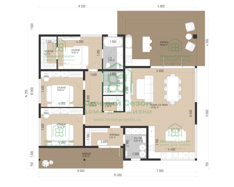 149 м2Стоимость строительства и площадь дома указана на странице каждого проекта. Внутренняя площадь помещений может меняться в зависимости от толщины стен и внутренней отделки. Стоимость строительства и проектирования указана без учета стоимости крылец, террас и балконов. Возможно внесение изменений в проект дома, внесение изменений в комплектацию дома и строительных материалов с учетом пожеланий Заказчика и корректировкой стоимости.