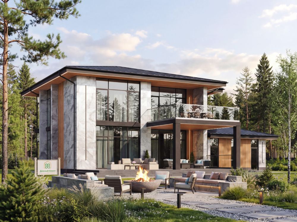 Проект дома «Куршевель» от компании «Дачный Сезон» — это современный двухэтажный загородный коттедж премиум-класса для круглогодичного проживания, сочетающий элегантную архитектуру, продуманную планировку и статусный внешний вид.