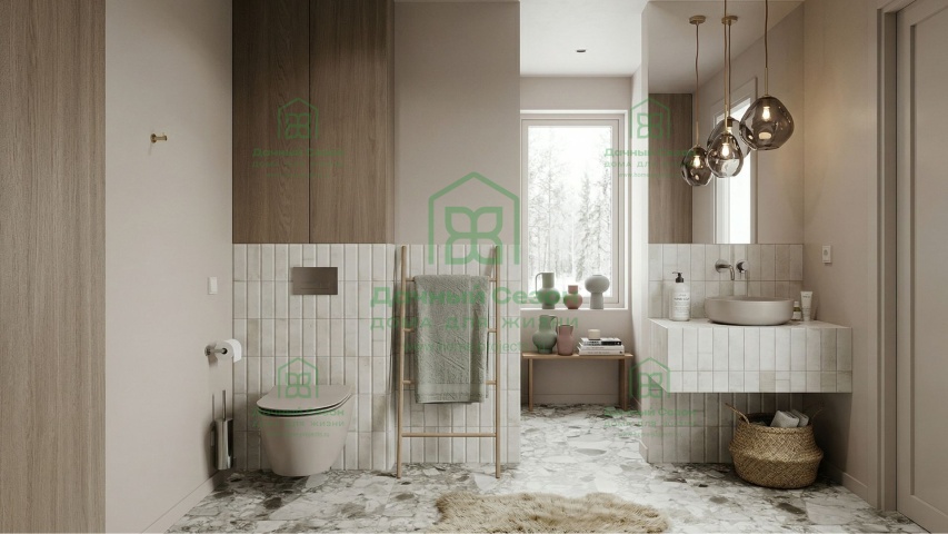 Предусмотрено два санузла (включая мастер-ванную и гостевой с/у).