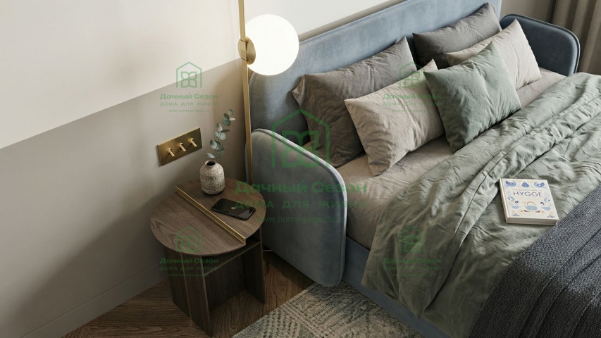 В центральной и левой части дома расположены жилые комнаты, удаленные от шума гостиной: