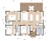 Проект «Лестер» представляет собой одноэтажный коттедж в скандинавском стиле, объединяющий компактность и высокий уровень комфорта. При габаритах фундамента 9,5х15 м (с учетом выступов террасы ширина составляет 12 м) дом обладает общей площадью 140 м², что делает его оптимальным решением для семьи из 4–5 человек.