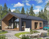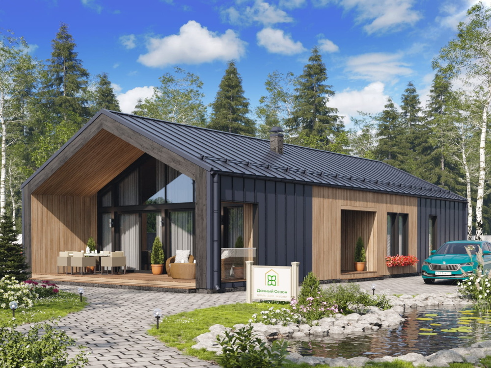 Проект «Лидс» от СК Дачный Сезон представляет собой просторный одноэтажный дом, выполненный в лучших традициях современного фахверка. Благодаря панорамному остеклению главного фасада и продуманной планировке, этот коттедж станет идеальным местом для жизни семьи, которая ценит свет, простор и архитектурный стиль.