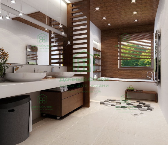 Продуманная эргономика: в доме предусмотрено два комфортных санузла (6,10 м² и 3,24 м²), а также отдельное тех. помещение 5,97 м².